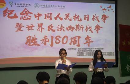 活动伊始,校青马班学员傅一凡以“铭记胜利八十载,赓续初心万里程”为主题,深入解读习近平总书记关于抗战胜利80周年的重要讲话精神,并生动讲述川农人在不同历史时期为国家发展作出的卓越贡献,激励同学们要以抗战精神为引领,将个人理想融入民族复兴的伟大征程。