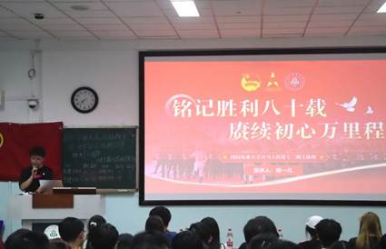 为深入学习贯彻习近平总书记关于抗战胜利80周年的重要讲话精神,引导青年学子厚植家国情怀、传承红色基因、勇担时代使命,10月10日,四川农业大学食品学院、生命科学学院团委直属流动团支部联合食健202401、02班团支部,生技202403、04班团支部,共同举办“纪念中国人民抗日战争暨世界反法西斯战争胜利80周年”主题示范性班团活动。182名青年学子齐聚一堂,在六大特色环节中接受思想洗礼、凝聚青春力量。