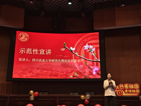 马克思主义学院研究生理论宣讲团成员发挥专业理论优势,以“行走”的社会大课堂为依托,沿着习近平总书记的足迹搜集宣讲素材,让理论宣讲更接地气、更有温度、更具感染力。成员们当好青年发声筒,深入四川、重庆、河南、甘肃等4省8市开展党的创新理论宣讲,用“青言青语”让党的创新理论“飞入寻常百姓家”。