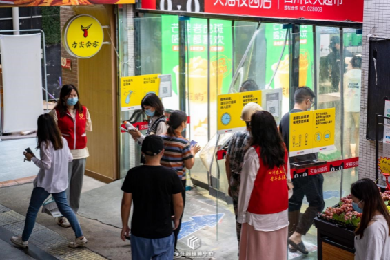 自二轮“三天三检”工作起,核酸检测进行了时间提早并压缩的调整,面对早晨6点开始的核酸检测与长达4小时的不间断服务,青年志愿者们挺身而出,不分早晚,始终坚守检测一线。他们在核酸点耐心引导、扫码登记、测量体温、协助弱势群体……面对庞大的待检人群,志愿者们全力维护检测现场秩序井然,成为检测工作的强心剂与定心丸。