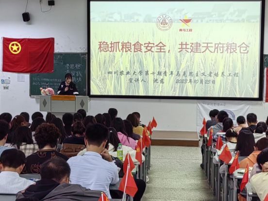 学思想、重实践、建新功,争做习近平新时代中国特色社会主义思想的信仰者、践行者、传播者。据悉,我校第十期青马班学员依托“青马燎原”宣讲团,以此次专题学习为基础,集中备课研讨、铺开理论宣讲,围绕粮食安全、乡村振兴、传统文化、生态文明、科技创新等方面,持续面向全校班团支部及学校周边基层组织开展小范围、面对面理论微宣讲,带动广大团员和青年在党的创新理论学习领会的深化、内化、转化上下功夫、见实效。