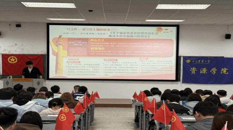 为深入学习贯彻全国两会精神,深刻领会中央一号文件核心内涵,引导广大团员青年厚植家国情怀、勇担兴农使命,传承百廿川农精神与雷锋精神,3月31日下午,资源学院团委直属部门流动团支部、研究生流动团支部、资环202404班团支部、地理202402班团支部、地理202503班团支部、资环202505班团支部面向资源学院全体同学开展“感悟两会精神,喜迎百廿芳华”示范性主题班团活动。共150余名师生相聚学习。