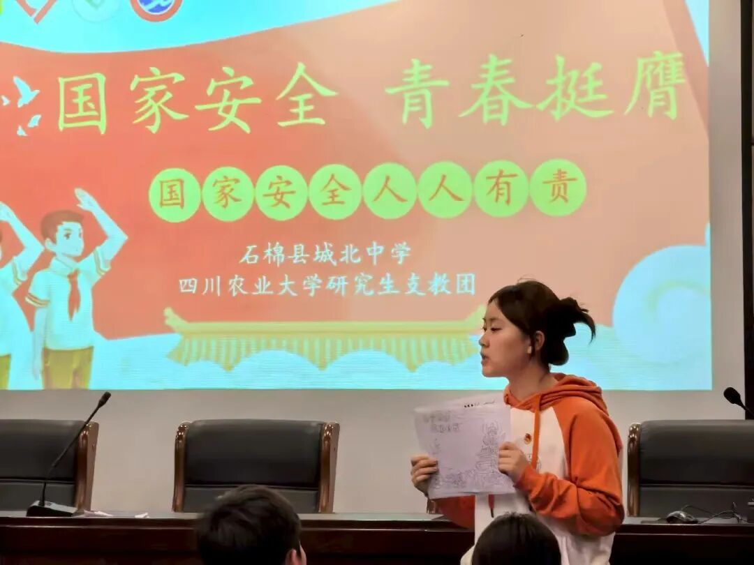 国家安全教育日主题活动不仅有效提升了同学们的安全素养与法治意识,更激励着广大团员青年以挺膺之姿扛起责任。四川农业大学研究生支教团将持续以青春之力践行使命,把国家安全宣传教育融入日常教学与实践活动,引导青少年树立正确的总体国家安全观,让青春在守护家国平安的征程中绽放绚丽之花。