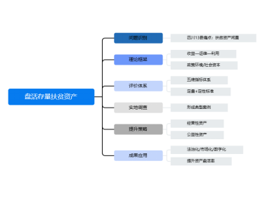 团队以项目组成员跟随导师进行衔接资金绩效评估工作为起点,探索盘活存量扶贫资产的提升路径。团队足迹遍布四川省13县91乡镇128村,对扶贫资产盘活工作进行实地调研与访谈。针对典型案例揭示盘活扶贫资产现存困境并形成提升策略:围绕“制度贯通、责任压实、能力升级”主线优化顶层设计以应对政策扶持不足阻碍产业启动;构建“产权清晰化—运营专业化—效益持续化”的扶贫资产长效治理机制以破解资产管理缺位导致运营失范的难题;利用科技、人才与资金三大核心要素构建扶贫资产价值转化的支撑体系以缓冲经济发展滞后限制资产运营的压力。项目成果形成可复制的资产盘活模式,建议获地方政府采纳成效显著,通过应用证明、媒体报道等成果获广泛认可,为乡村振兴提供科学范式与实践样板。