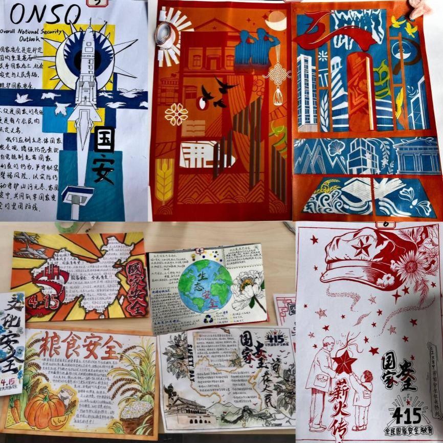 本次活动立足宣教核心、呼应青年特质,精心设置多项特色活动,为全校同学铺设一条学习国家安全知识、践行安全责任的成长路径。雅安、成都、都江堰三校区线下点位同步开放,将国家安全知识融入校园日常,共同筑牢了一道普及安全理念、凝聚安全共识的思想防线。在“执笔绘国安,妙笔传初心”手抄报创作活动中,同学们以画笔为媒,聚焦国土、经济、生物、网络等关键安全领域,将守护初心落于纸上。一幅幅主题鲜明、意蕴深厚的优秀作品,在各校区线下设点集中展出,如一道道流动的安全风景线,引得师生纷纷驻足,在欣赏中悄然传递安全理念。与此同时,“国安知多少,答题筑防线”知识问答环节现场氛围热烈,同学们踊跃扫码参与,在竞答中夯实知识根基,在趣味比拼中深化国安认知。现场工作人员有序引导、细致讲解,帮助同学们明晰维护国家安全的权利与义务,让责任意识在校园蔚然成风。