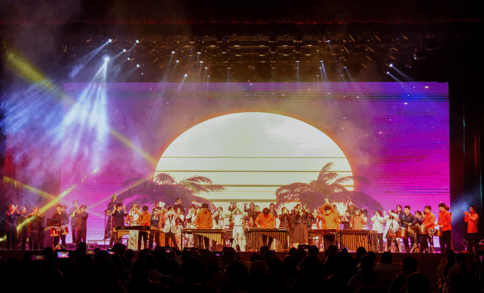 最后,三校合奏的返场曲目《情热大陆》燃爆全场,全体演员拍打着节奏走下舞台走向观众,本次音乐会在全场热情磅礴的演奏中圆满落幕。